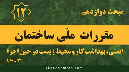 27 آبان 1403 مبحث دوازدهم مقررات ملی ساختمان – ایمنی، بهداشت کار و محیط زیست در حین اجرا ویژه آخرین ویرایش مبحث ۱۲ مقررات ملی ساختمان ویرایش پنجم بوده که در سال ۱۴۰۳ منتشر شده است.