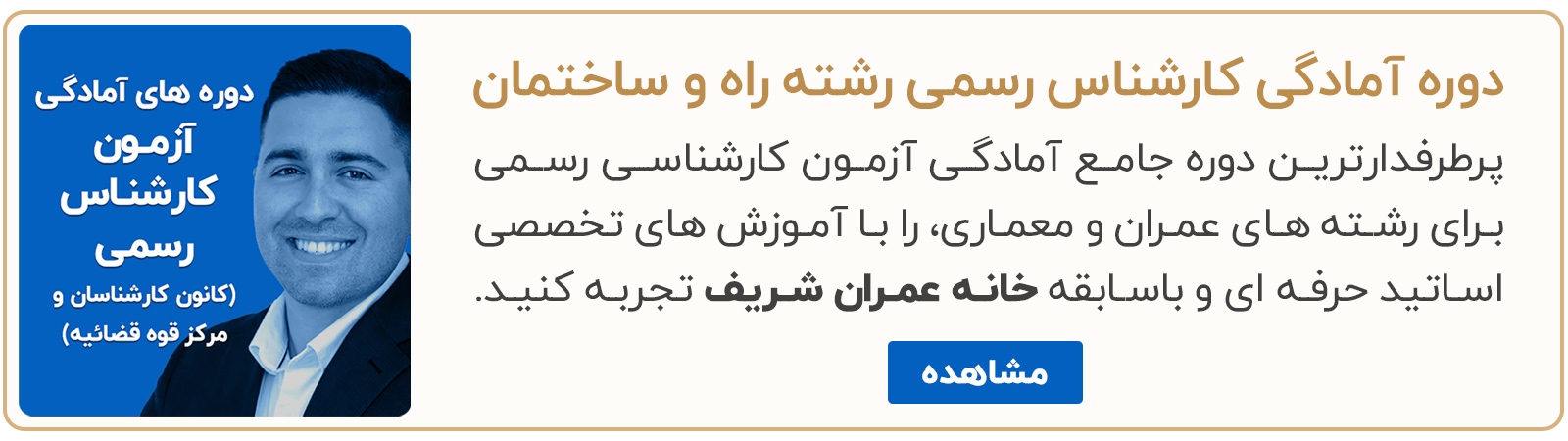 مجموعه خانه عمران شریف در مشهد افتخار در این مسیر مهم همراه شماست. برای کسب اطلاعات بیشتر و مشاوره یا ثبتنام در دوره آمادگی آزمون کارشناس رسمی با ما تماس بگیرید: